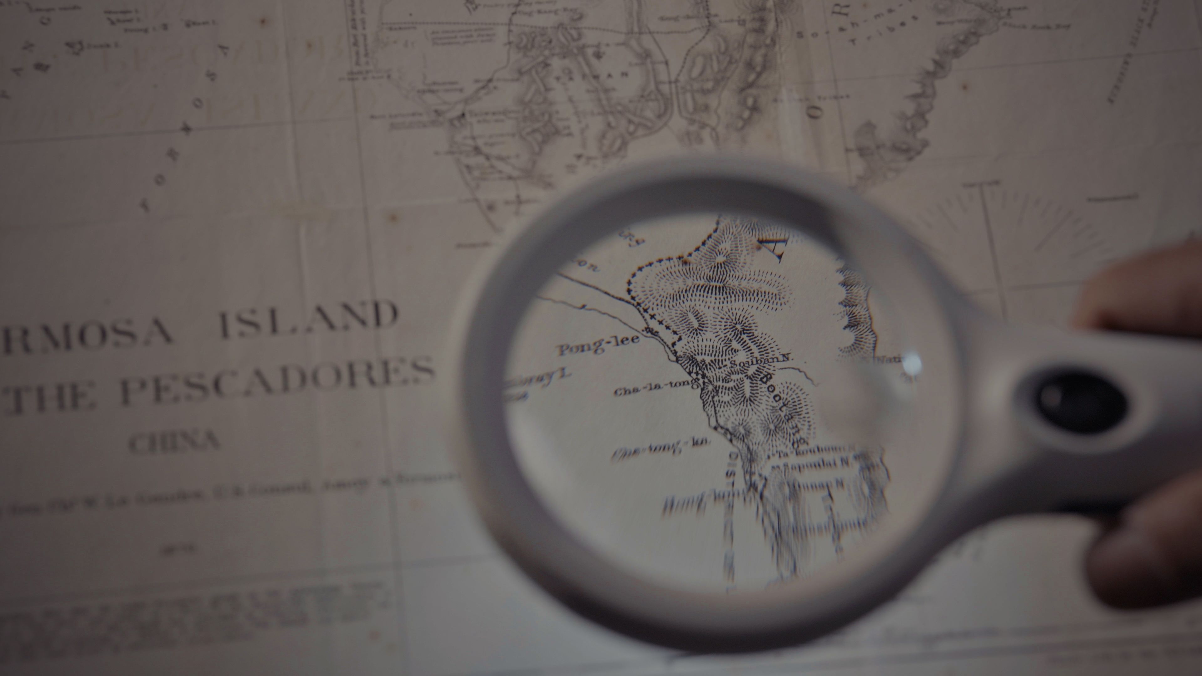李仙得是一個充滿傳奇色彩與矛盾的人物。 在翻閱史料照片時,有一張他與臺灣原住民的合影深深震撼了我。照片攝於一百多年前,畫質雖有顆粒,卻掩蓋不住那種跨越族群的張力。當我們透過鏡頭特寫,試圖在剪輯室的大螢幕上細看他的臉龐時,那個細節變得如此清晰——他少了一隻眼睛。那是美國內戰留在他身上的殘酷勳章。這隻義眼彷彿是一個隱喻:他的足跡,象徵著美國在結束內戰、重整國力後,將勢力向西太平洋延伸的渴望。 李仙得對臺灣的「看」,是帶有目的性的,卻也是鉅細彌遺的。他甚至隨身攜帶氣壓計,精確地記錄下臺灣山巒的高低起伏。在他的筆下與測繪中,臺灣不再是清帝國視角下、從中國大陸往東看過去的那顆「橫躺的番薯」;李仙得繪製的地圖,讓臺灣在世界地圖上「站」了起來,由北向南的縱軸線,正式將這座島嶼納入了新帝國主義發展的節點之中。 然而,解讀李仙得是需要小心翼翼的。回看他的攝影集,那是攝影術方興未艾的年代。照片中,他記錄了原住民與漢人的面容,從影像流露出的肢體語言與氛圍,我能感受到他當時頗受原住民部落的信賴。但在文字紀錄裡,他的內心獨白卻顯得冷酷而精算——他亟欲說服美國,乃至於後來的日本政府,前來這座島嶼獲取資源。 在製作過程中,最讓我們團隊激動的一刻,是拍攝他繪製的那幅臺灣地圖。地圖上明確地劃出了一條「番界」,界外之地標示著不受清政府管轄。當攝影機的微距鏡頭緩緩滑過那些手繪的線條與註記,我們彷彿看見了歷史的裂痕。那不只是一張地圖,那是臺灣命運轉折的預言書。
