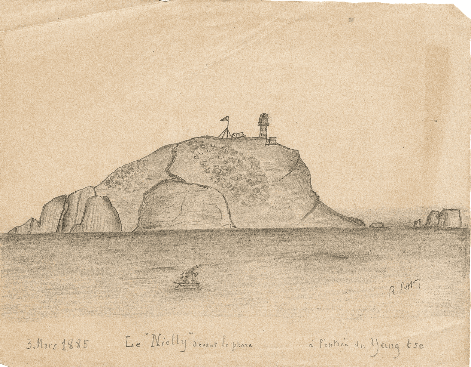 À la tombée de la nuit, on aperçoit la Saône, bateau français qui vient de Ning-po, nous apporter des ordres de l’amiral. Elle nous apprend que depuis notre départ, toutes les nuits on envoie des embarcations faire de l’hydrographie et sonder. Pendant ce temps, les Chinois tirent des coups de canon, mais sans jamais atteindre personne. La Saône a l’ordre de rester avec nous jusqu’à l’arrivée des bateaux qui doivent nous rejoindre. Nous passons alors la nuit près de Gutzlaff.