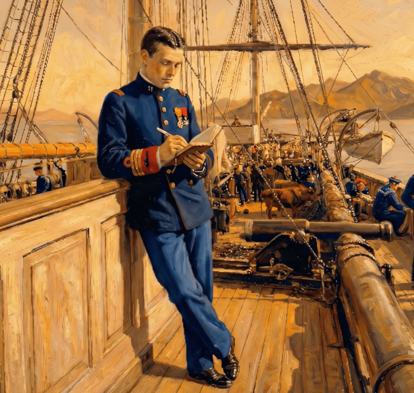 科邦在船艦上寫信的想像圖,取自「凝視海上的福爾摩沙」動畫紀錄片